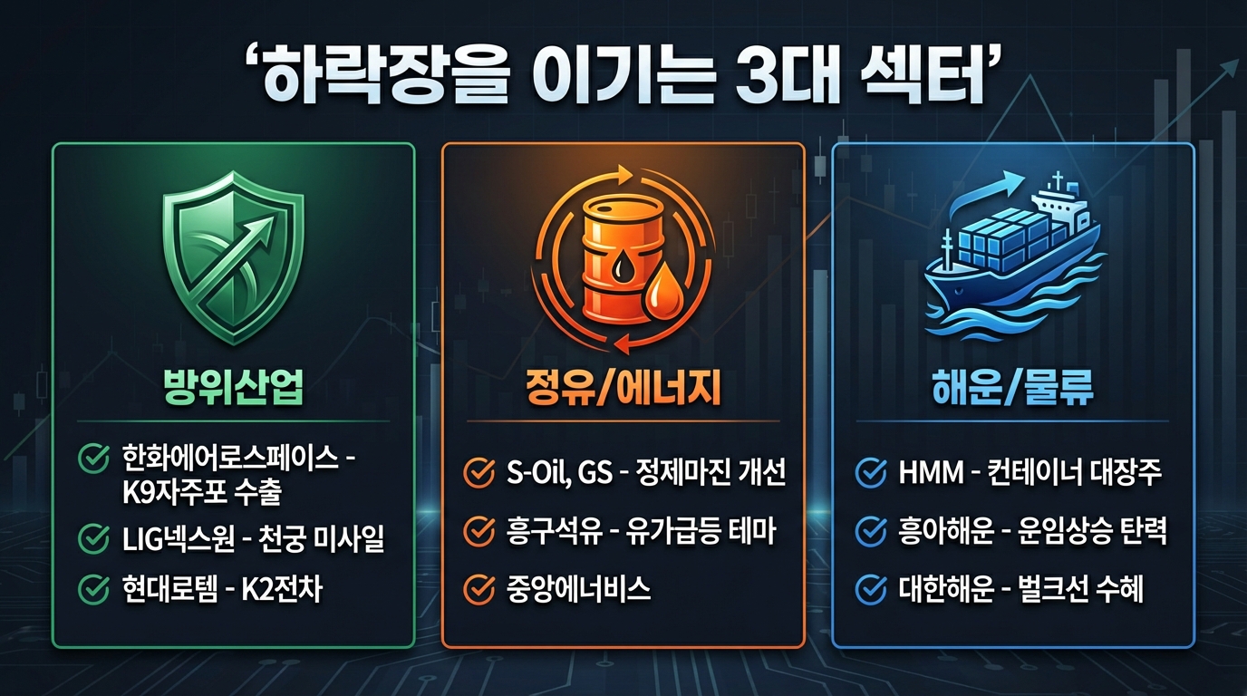 지수가 무너질 때 포트폴리오의 손실을 방어(Hedge)해 줄 수 있는 핵심 섹터 3가지와 주요 종목을 살펴봅니다.
