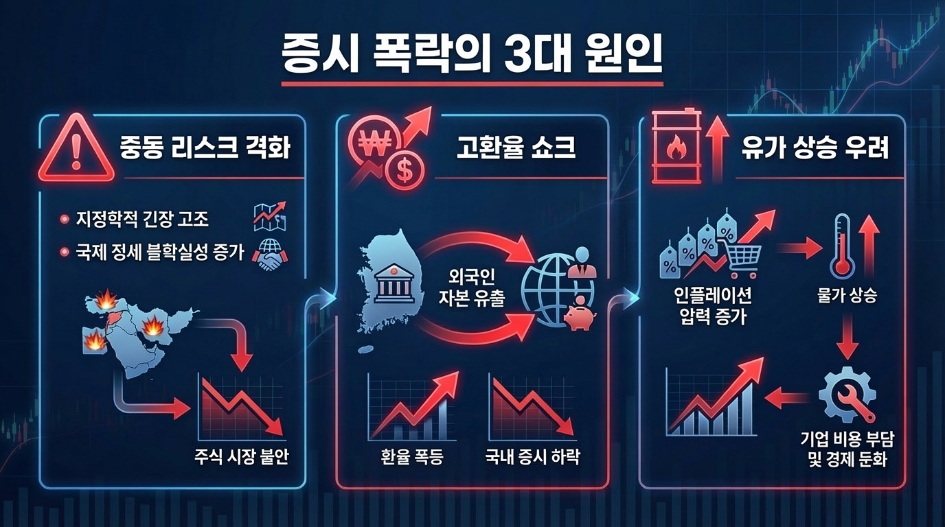 1. 증시 폭락의 트리거: 왜 중동 리스크에 시장이 발작했는가?