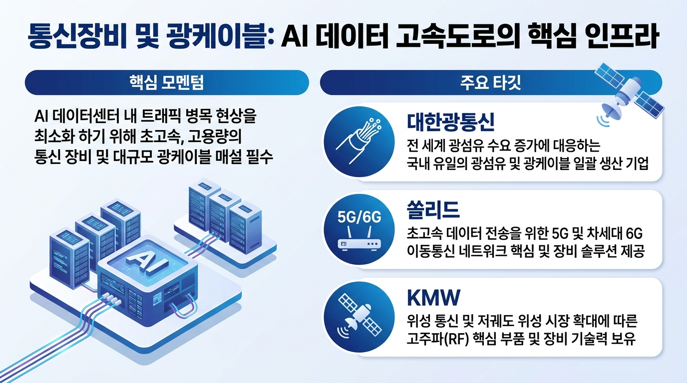 1. 통신장비 및 광케이블: AI 데이터 고속도로의 핵심 인프라
