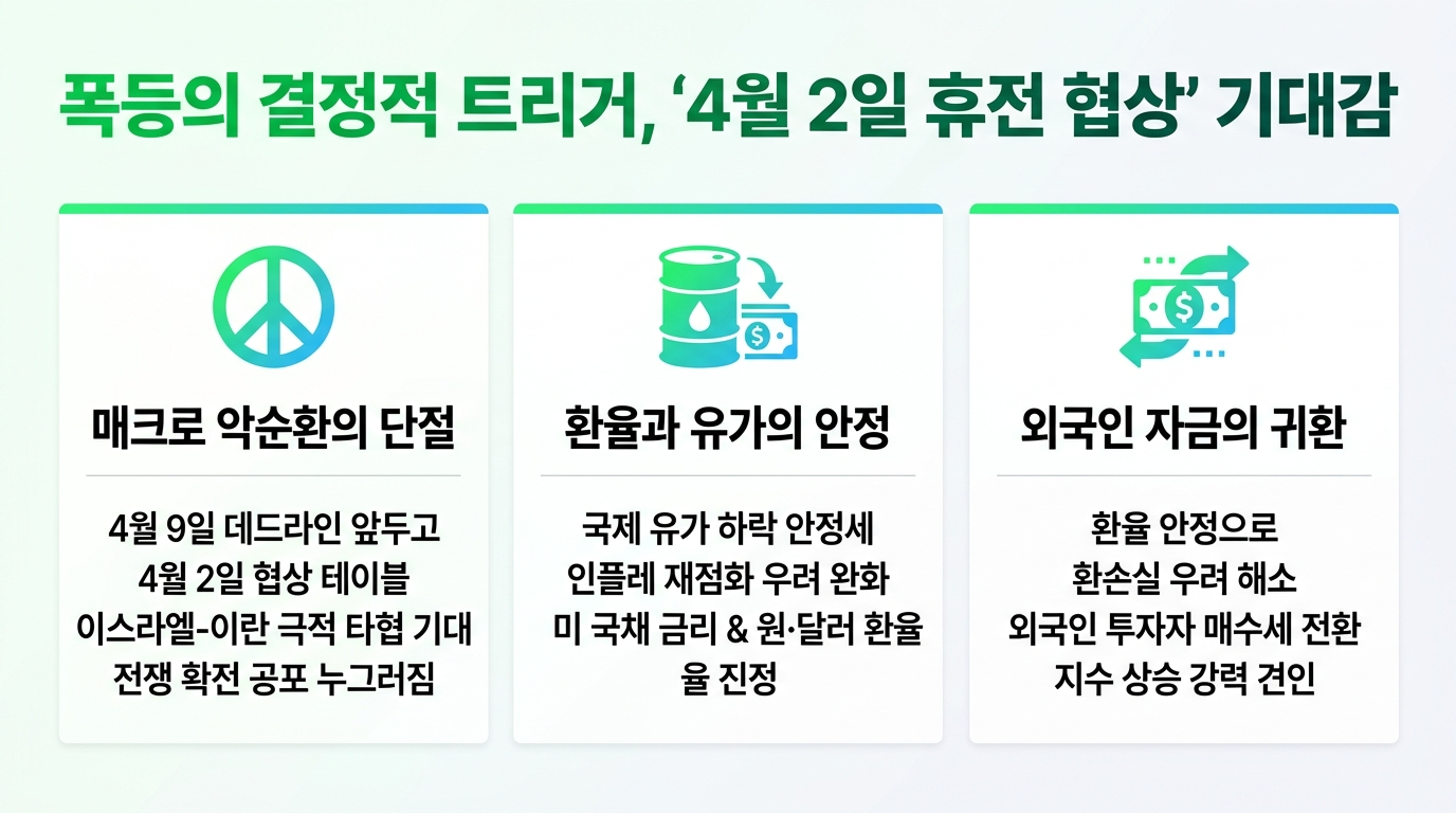 1. 폭등의 결정적 트리거, '4월 2일 휴전 협상' 기대감