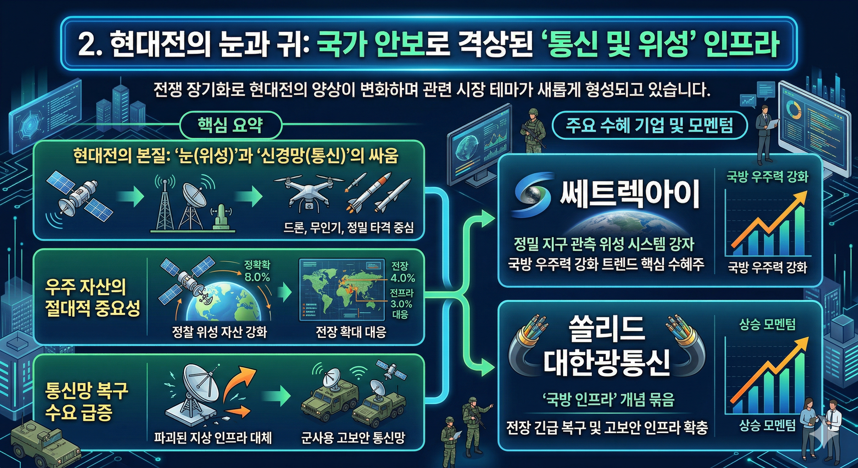 2. 현대전의 눈과 귀: 국가 안보로 격상된 '통신 및 위성' 인프라