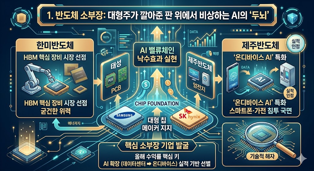 1. 반도체 소부장: 대형주가 깔아준 판 위에서 비상하는 AI의 '두뇌'